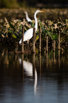 Egrets wade through shallow water in Kenilworth Marsh in Washington, DC. | Chesapeake Bay Program